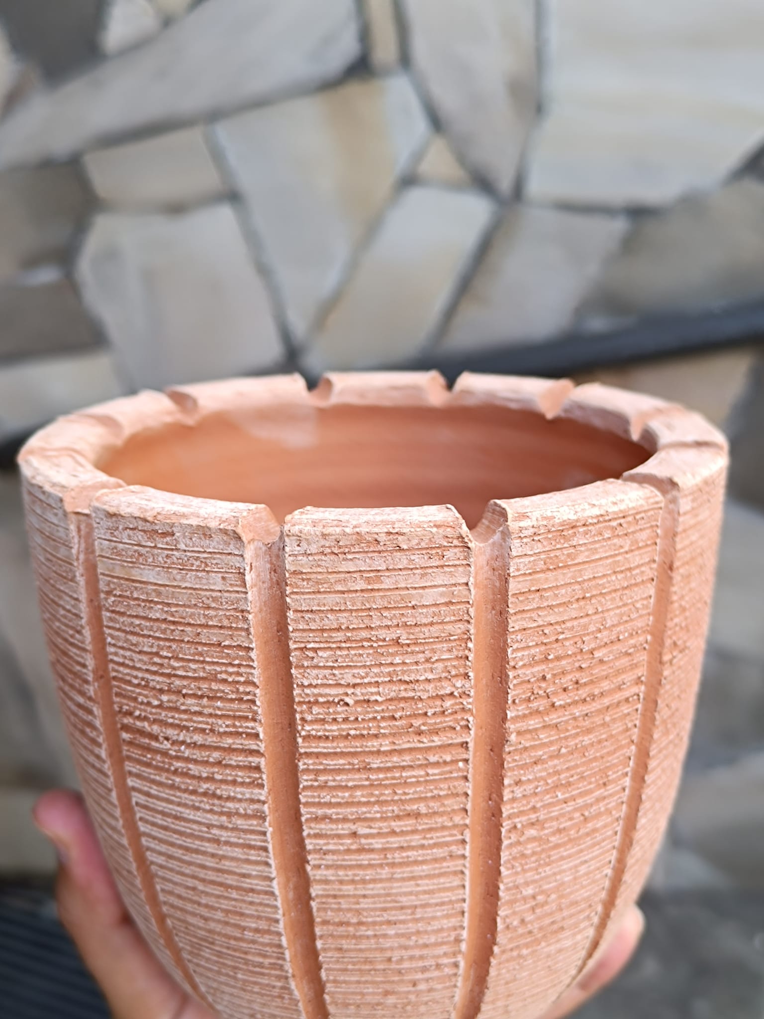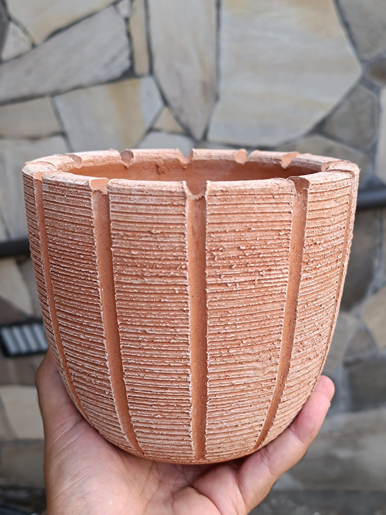 Vaso terracotta inciso a spicchi